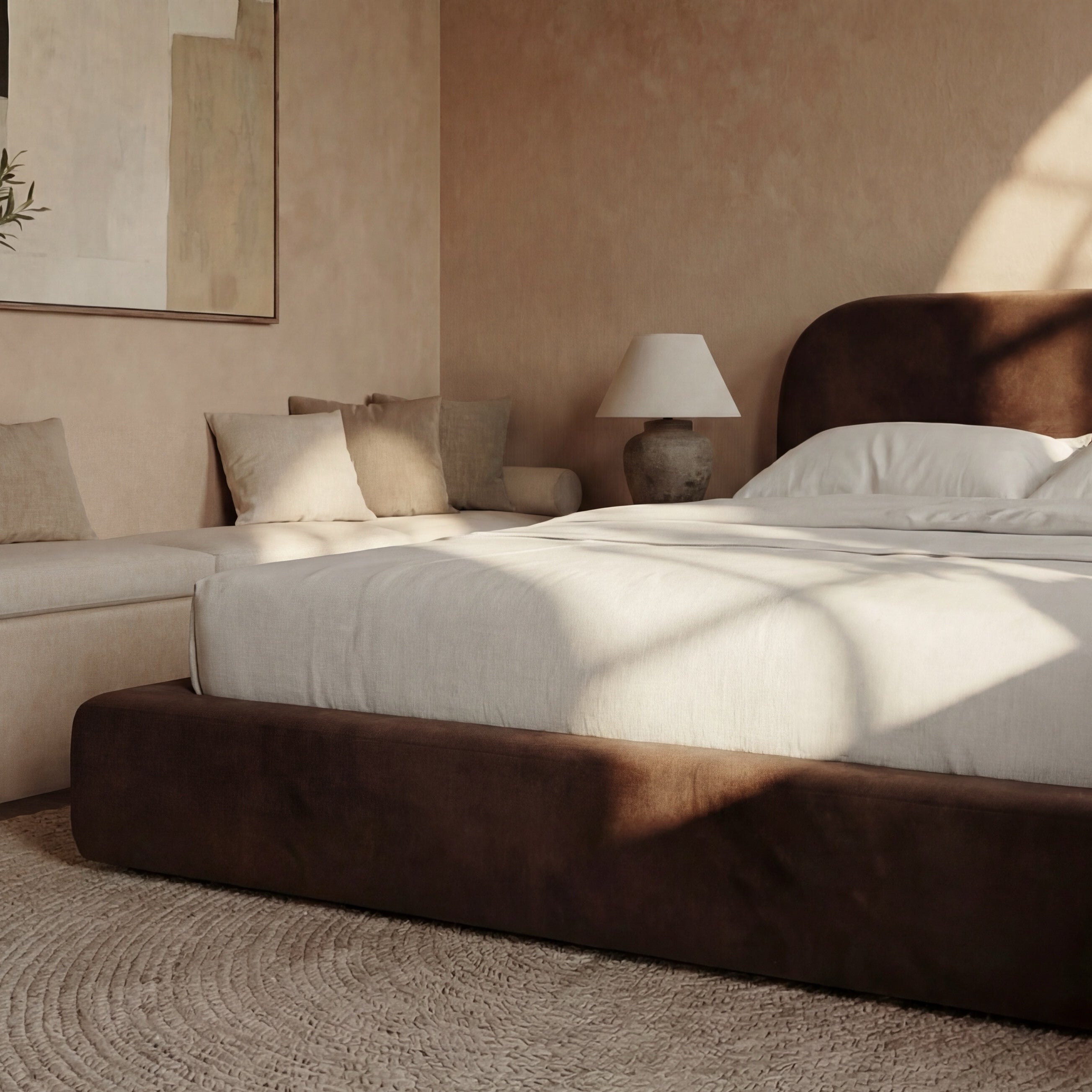 Crafted for comfort and quiet luxury. A cushioned, fully-upholstered design that softens your space and elevates the way you sleep.